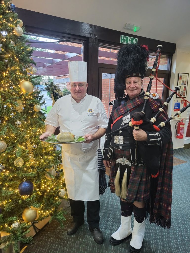 The haggis was suppled by McCaskie Butchers of Wemyss Bay – www.mccaskiebutcher.co.uk. The haggis was piped in by Ron Paterson who also gave the traditional address. Andrew Fox gave a superlative recital of Tam O’Shanter.